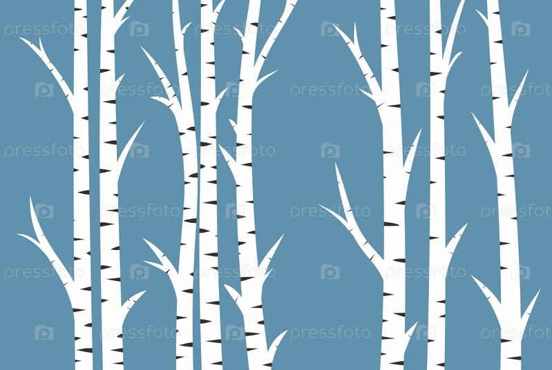 Голубой фон с березовым лесом