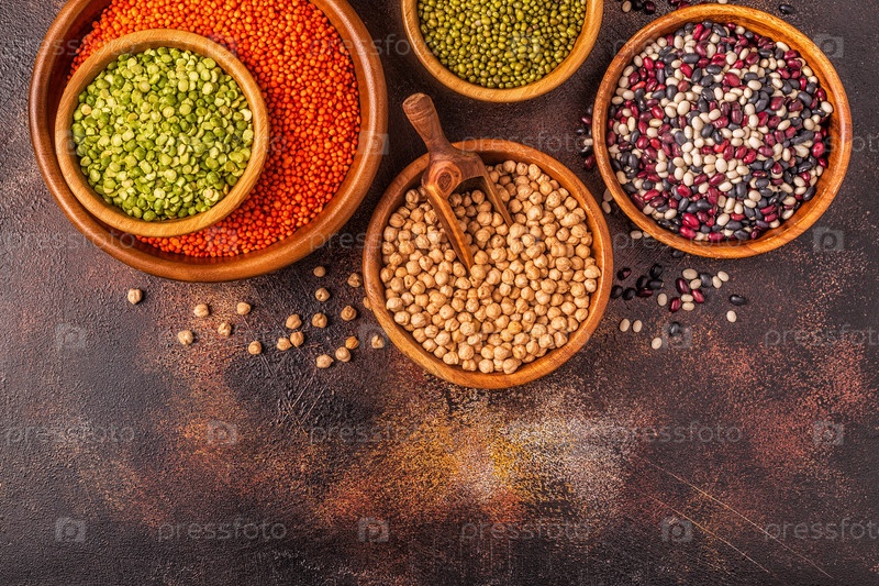 Ассортимент бобовых - чечевица, горох, мунг, нут и разные бобы