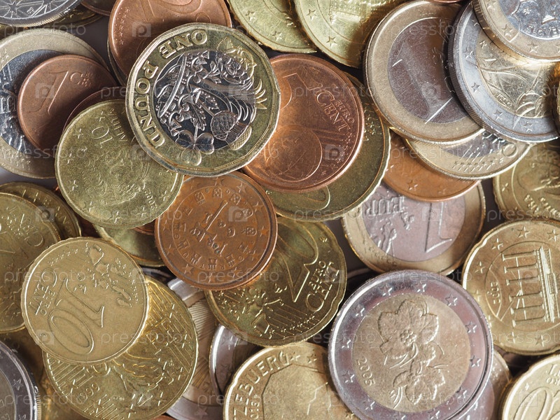 Монеты евро деньги (EUR), валюта Европейского союза полезна в качестве фона