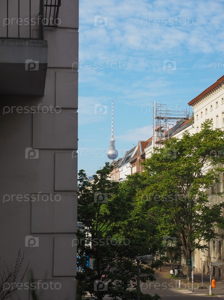 Fernsehturm (что означает 'телевизионная башня') на Александерплац в Берлине, Германия