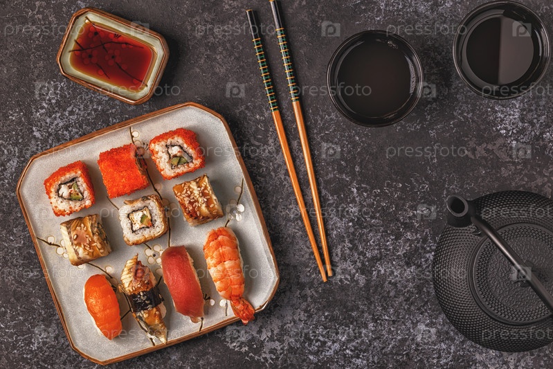 Суши-сет: суши и суши-роллы на тарелке