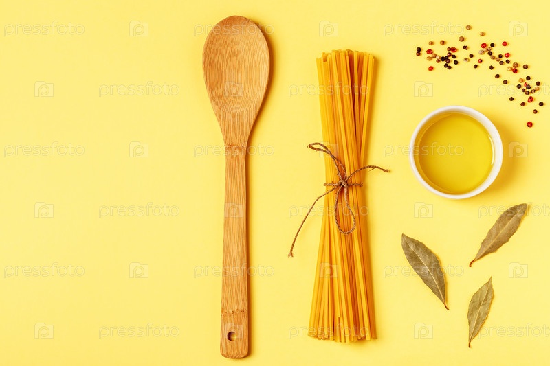Ингредиенты для приготовления пищи на желтом ярком фоне