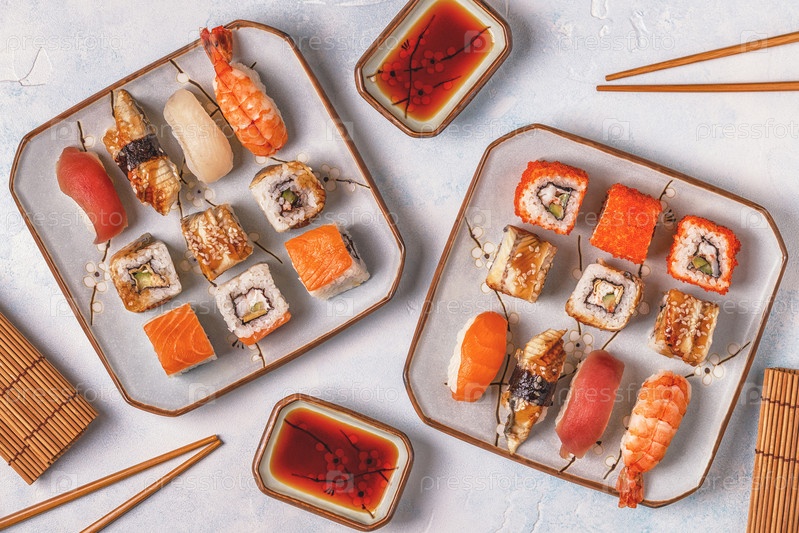 Суши-сет: суши и суши-роллы на тарелке