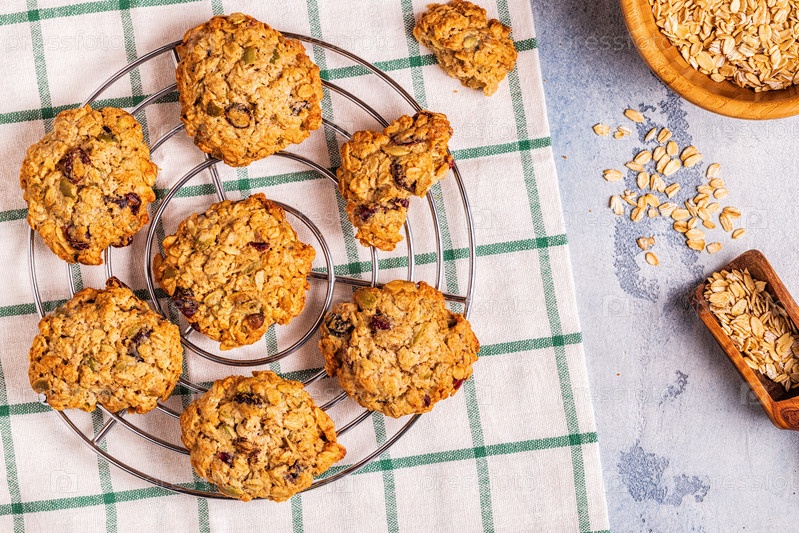 Домашнее овсяное печенье с клюквой и тыквенными семечками