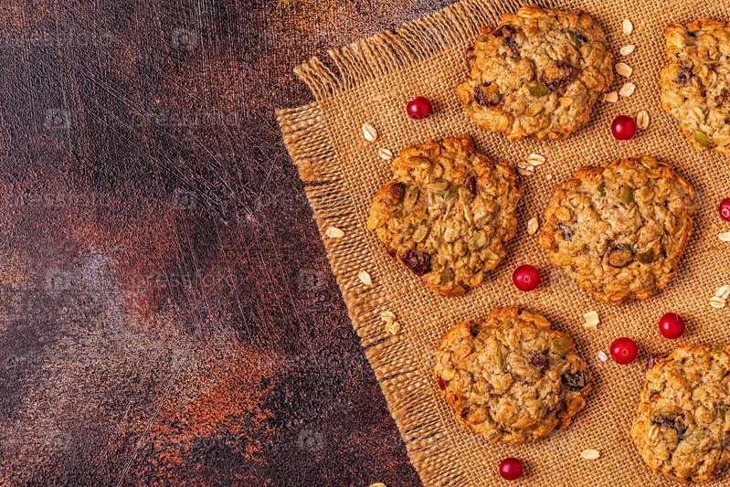 Домашнее овсяное печенье с клюквой и тыквенными семечками