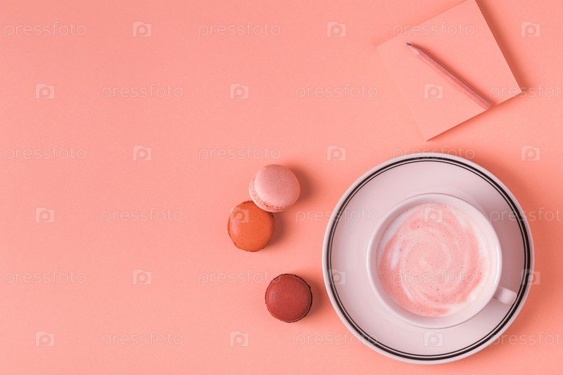 Чашка кофе с миндальным печеньем на пастельном фоне