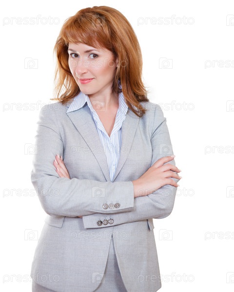 Привлекательная бизнес-леди в сером костюме