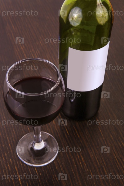Бутылка и бокал красного вина