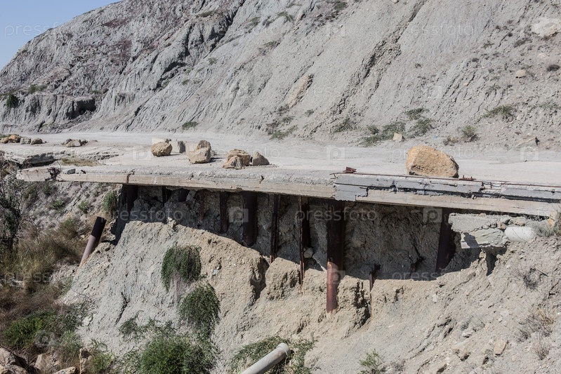 Разрушение шоссе в гористой местности
