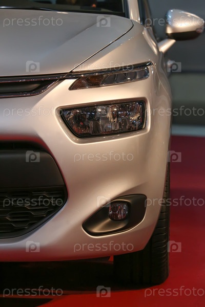 Современный серебристый автомобиль на выставке