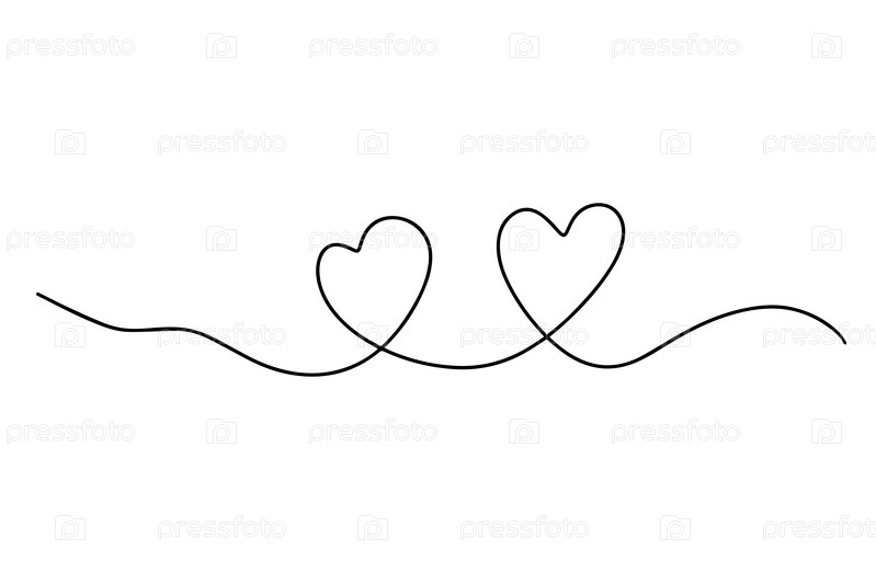 Непрерывный рисунок двух сердец. Пара сердец. Модная минималистская иллюстрация. Однострочный абстрактный рисунок