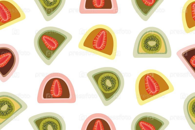 Фон с японским десертом Дайфуку. Коллекция различных моти дайфуку на белом фоне