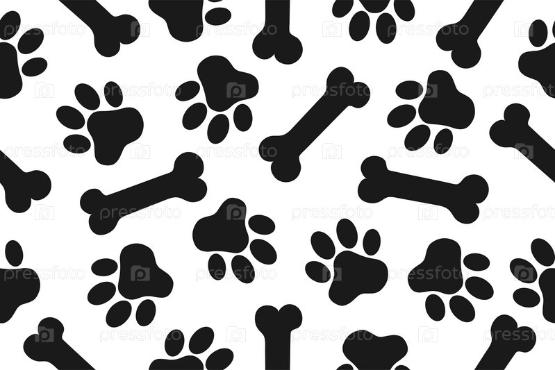 Фон с отпечатками лап животных и костью. Векторная иллюстрация в плоском стиле
