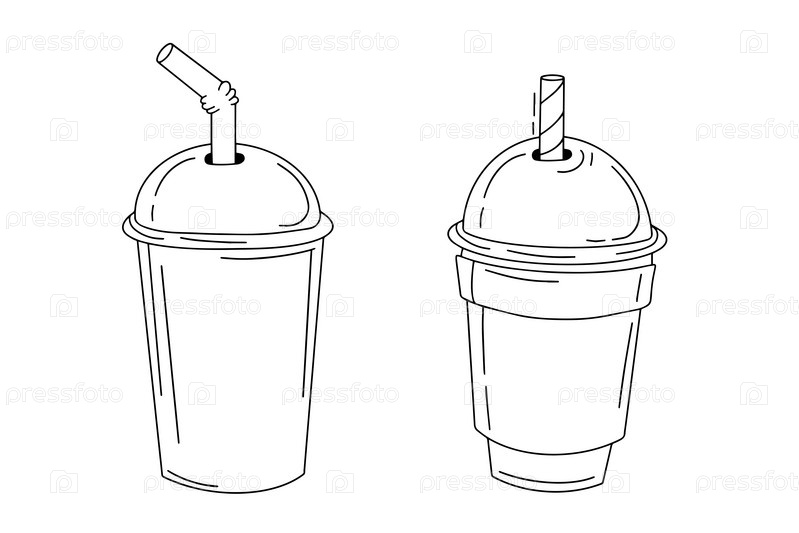 Чай, безалкогольные напитки в пластиковых стаканчиках, модный десерт, векторная коллекция