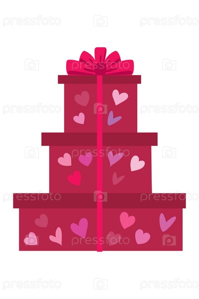 Набор подарочных коробок. Стопка подарков ко дню святого Валентина. Стопка подарочных коробок с лентой и бантом