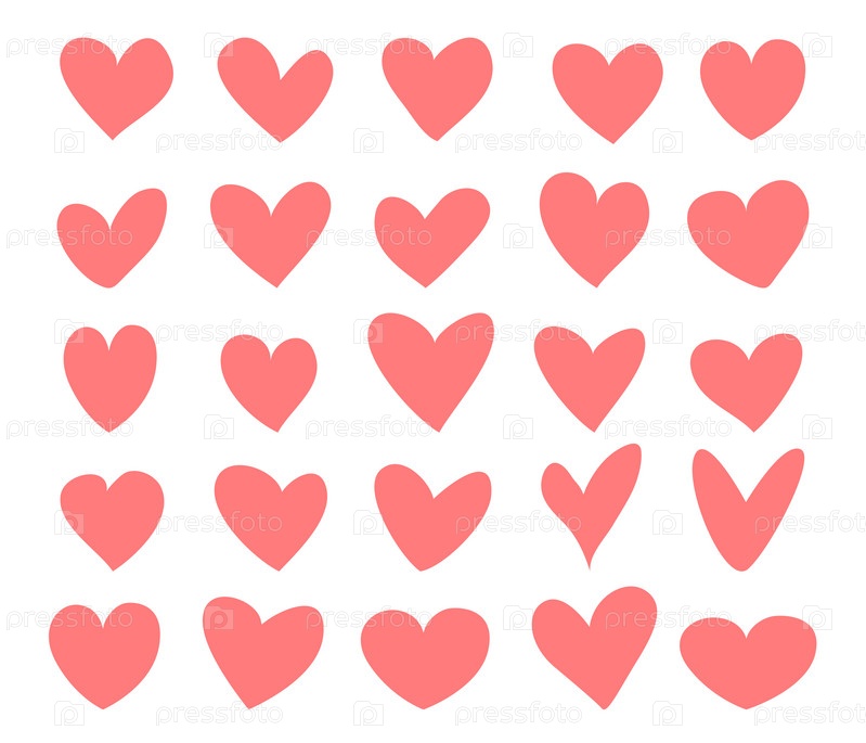 Набор розовых сердечек. Символ любви. Иллюстрация выделена на белом фоне