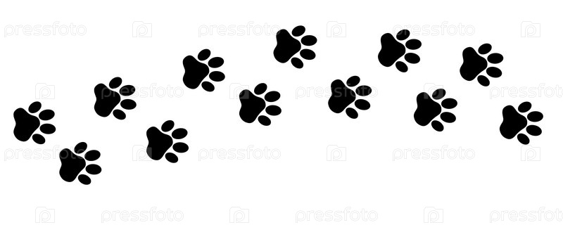 Следы домашних животных, собак или кошек. Отпечатки домашних животных. Узор лапы. Отпечаток лапы в виде черного силуэта