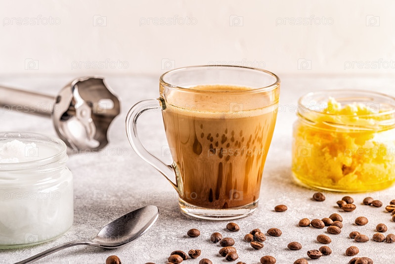 Кофе, смешанный с маслом ги и кокосовым маслом MCT