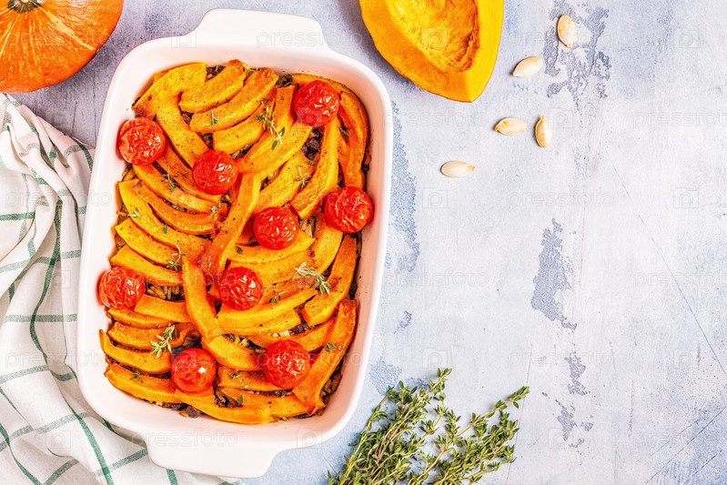 Запеканка из тыквы с мясом, рисом, помидорами