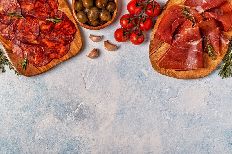 Испанские тапас с чоризо, хамоном, стол для пикника
