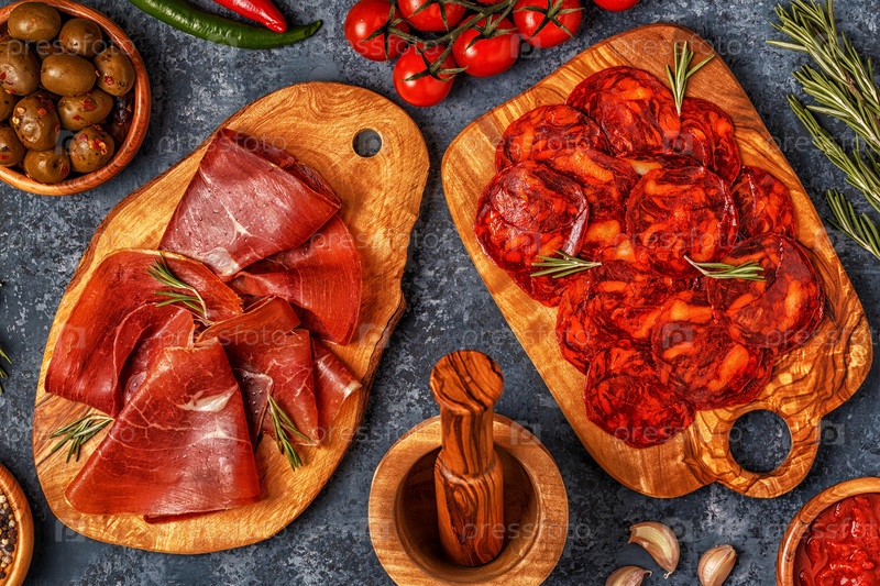 Испанские тапас с чоризо, хамоном, стол для пикника