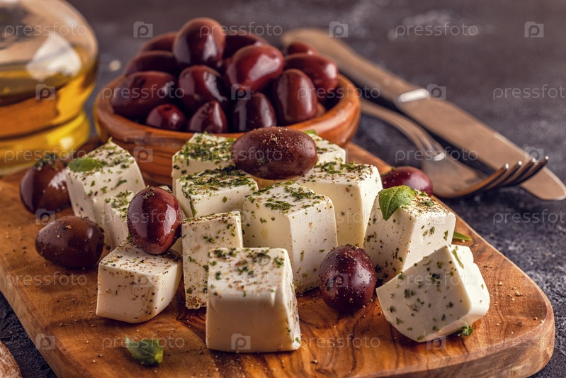 Греческий сыр фета с орегано и оливками