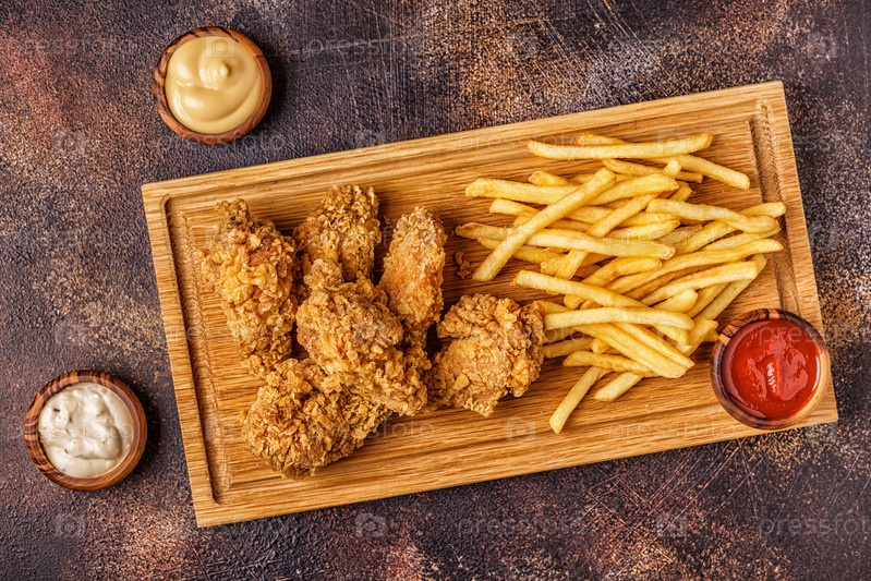Жареные куриные крылышки с картофелем фри