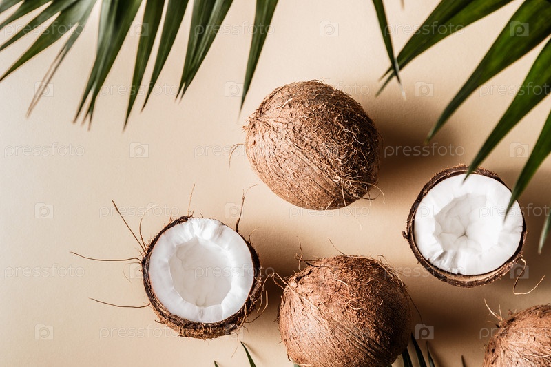 Кокосы на пастельном фоне
