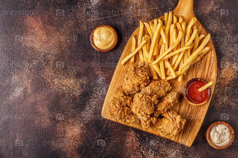 Жареные куриные крылышки с картофелем фри