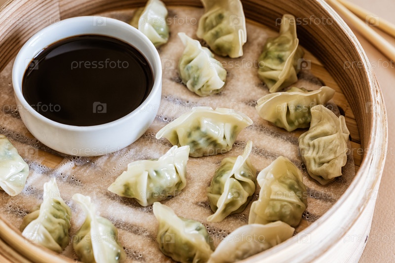 Азиатская гедза, закуска из пельменей, палочки для еды, пароварка