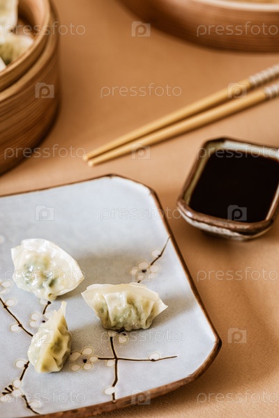 Азиатская гедза, закуска из пельменей, палочки для еды, пароварка