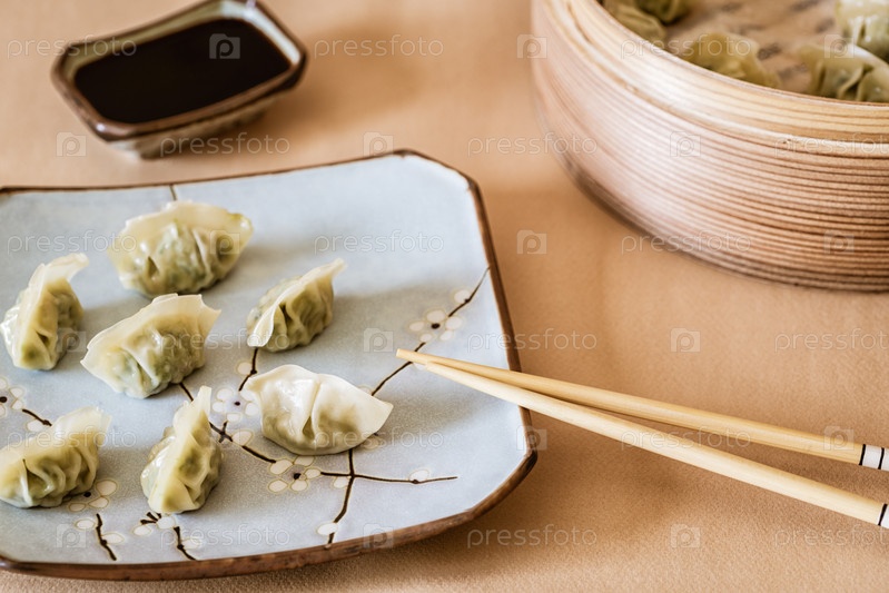 Азиатская гедза, закуска из пельменей, палочки для еды, пароварка