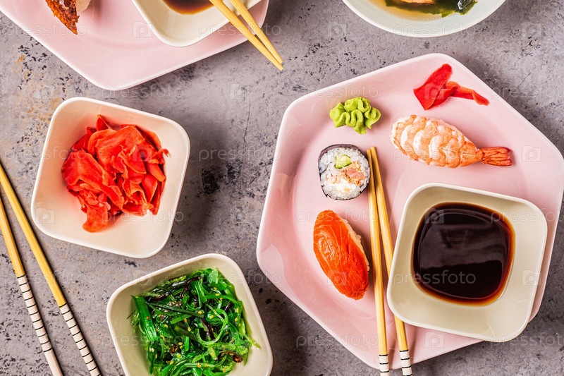 Стол с традиционной японской едой
