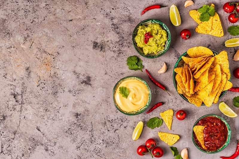 Мексиканская кухня: гуакамоле, сальса, сырные соусы с начос