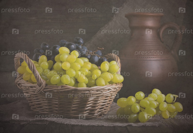 Виноград в корзине в деревенском стиле