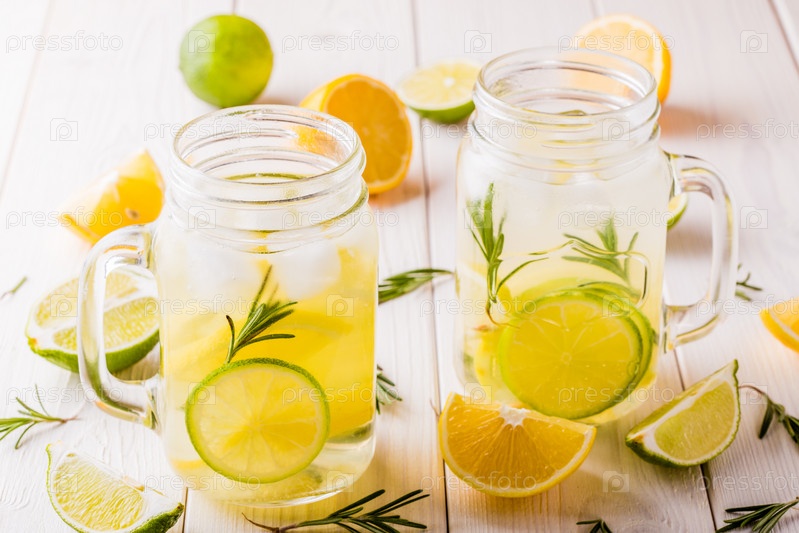Домашний лимонад с лаймом, лимоном, розмарином