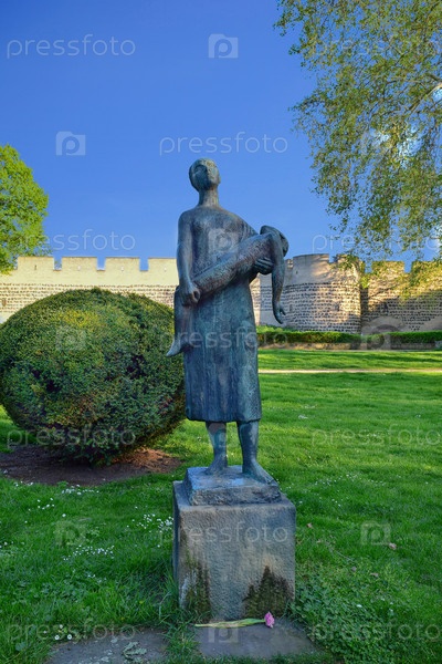 Скульптура скорбящей женщины с ребенком на руках