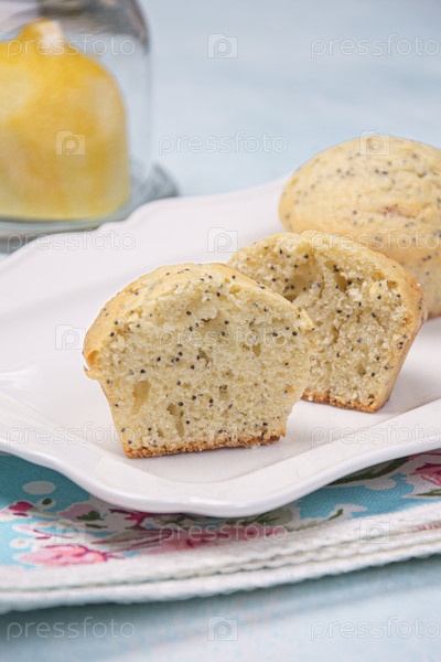 Лимонные кексы с маком на светлом фоне