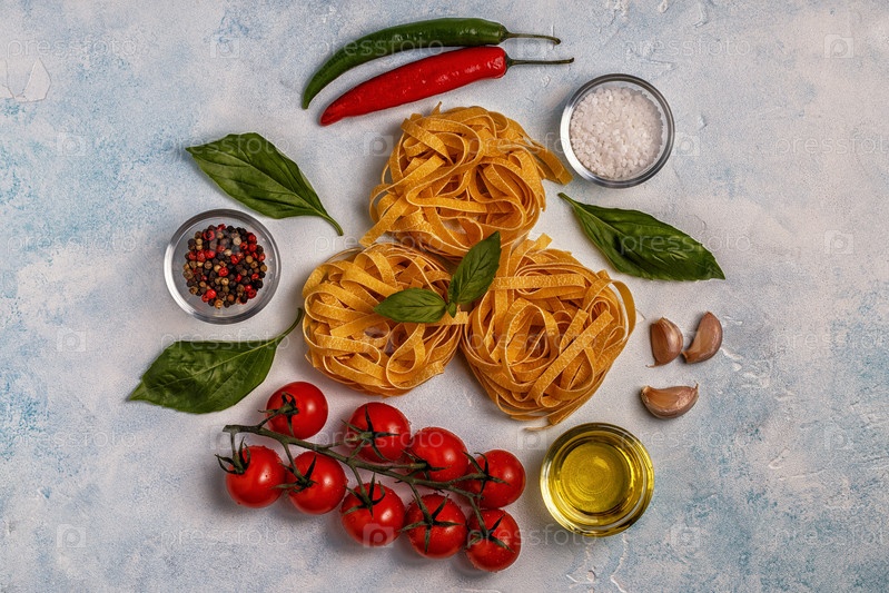Фон итальянской кухни с макаронами, специями и овощами