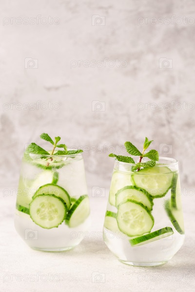 Свежая огуречная вода на светлом фоне
