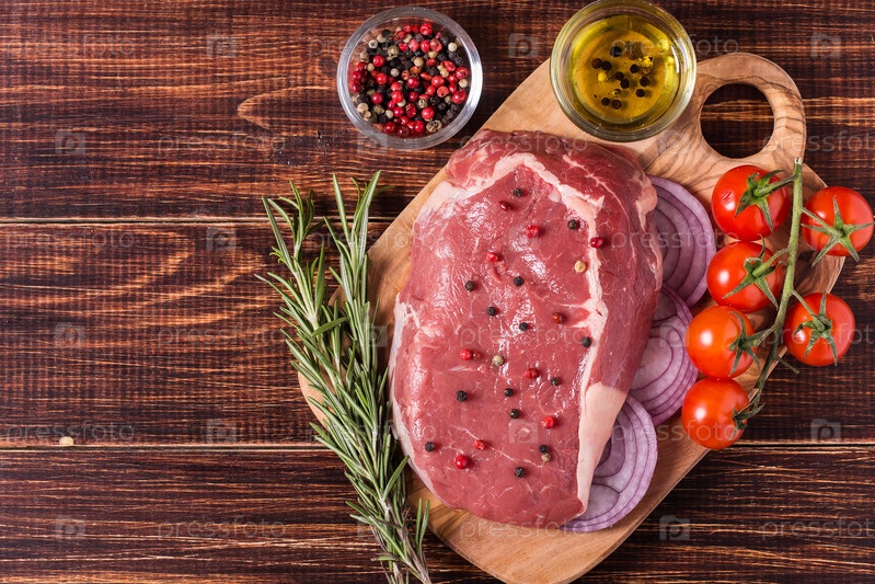Стейк Рибай из сырого свежего мяса, приправа