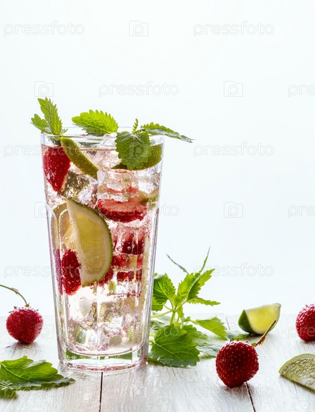 Домашний лимонад с клубникой, лаймом и мятой