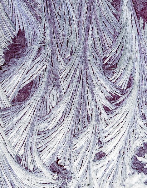Вертикальный фон со сложной красивой синей морозной текстурой узора на зимнем стекле