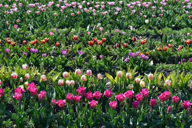 Поле тюльпанов разных сортов