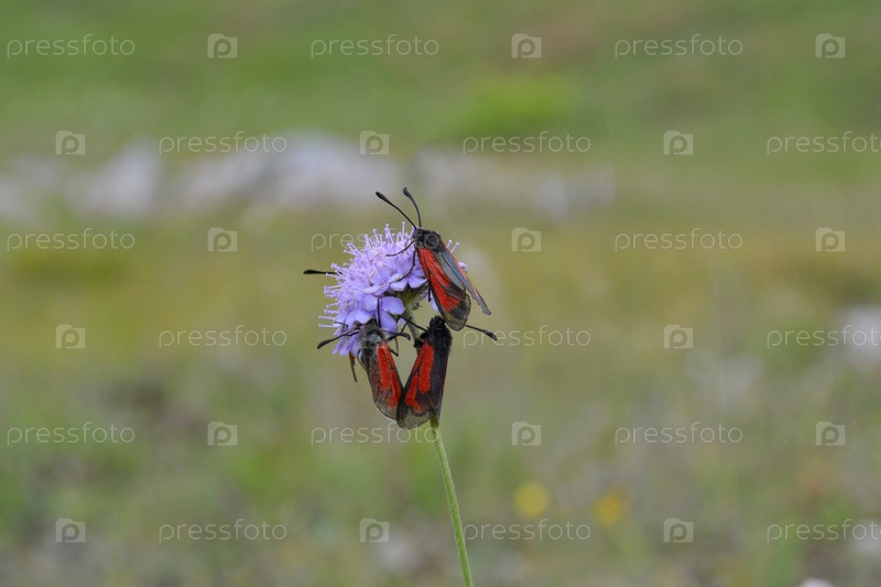 Три бабочки пестрянки на цветке
