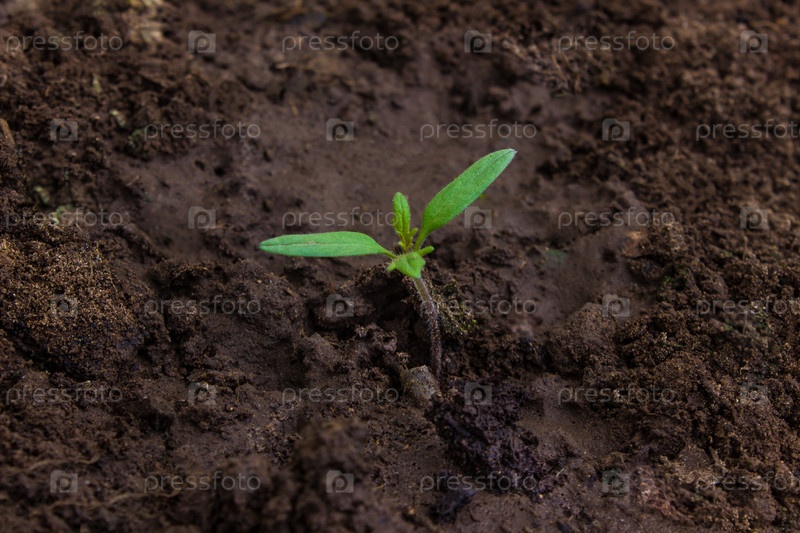 Росток молодого помидора в теплице. Садоводство. Молодые помидоры в саду