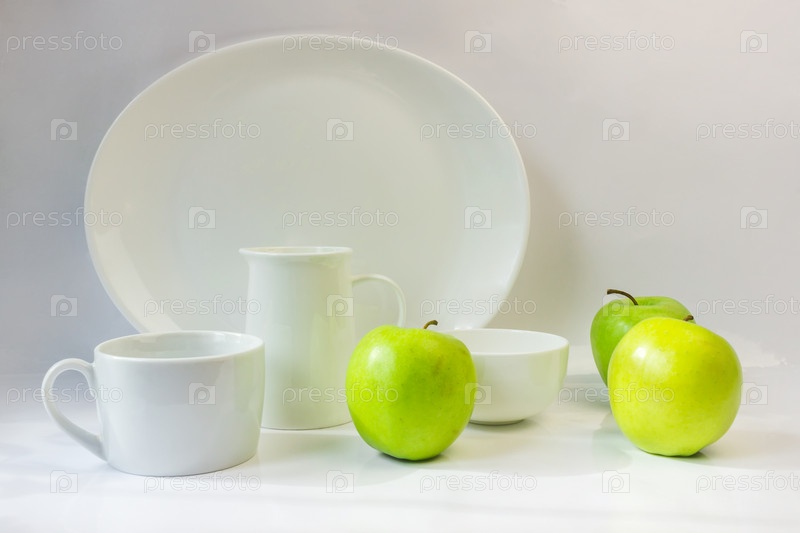 Набор белых блюд на белом фоне
