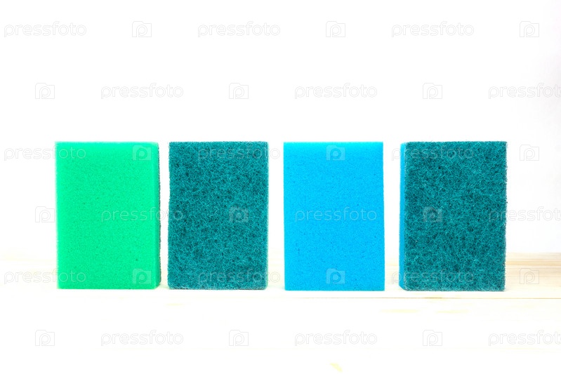 Красочные губки для бытовых нужд и для мытья посуды на белом фоне