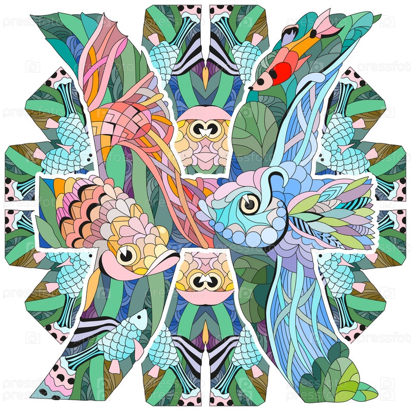 Знак зодиака РЫБЫ с мандалой, концепт-арт астрологии. Дизайн татуировки
