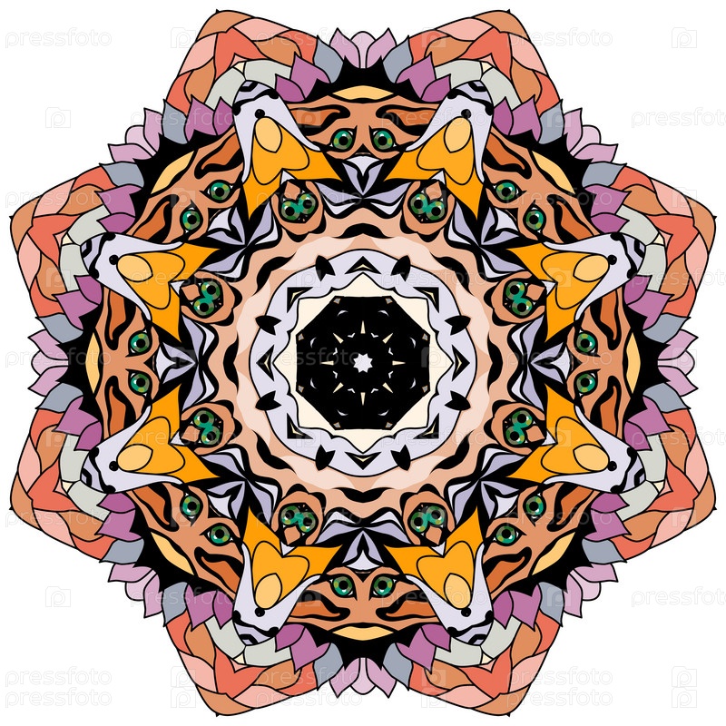 Декоративные круглые украшения. Необычная форма цветка. Восточный вектор, схемы антистрессовой терапии. Переплетение элементов дизайна. Вектор логотипов йоги